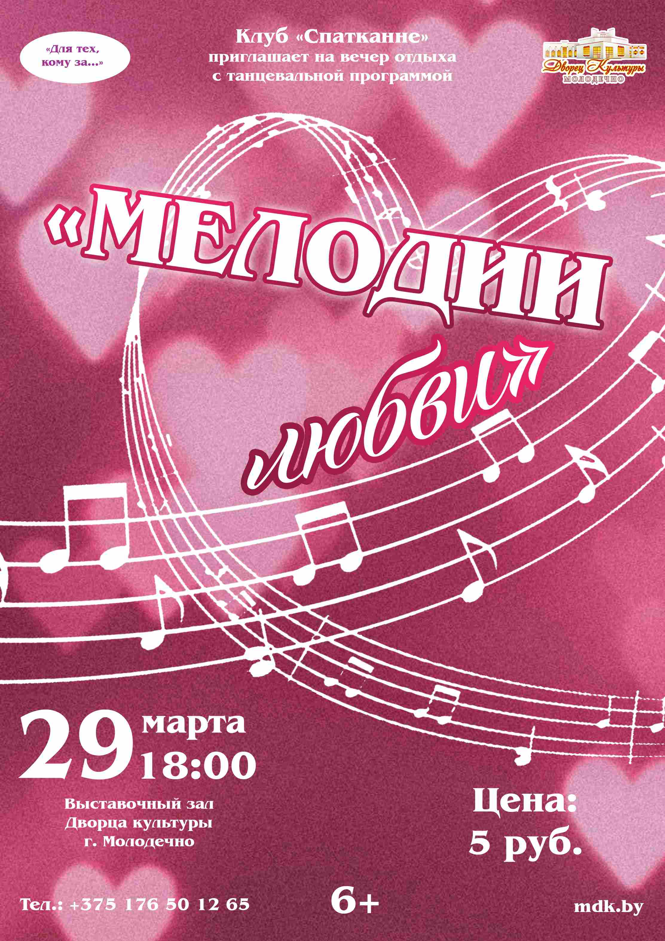 24.03.2026Клуб «Спатканне» Дворца культуры г. Молодечно приглашает 29 марта на вечер отдыха с танцевальной программой «Мелодии любви».
