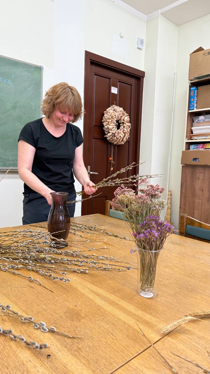 Он объединил детей и взрослых, которые с удовольствием погрузились в атмосферу весеннего праздника и рукоделия. Участники также узнали об истории, символах (в том числе, про вербу) и традициях Пасхи. Затем каждый смог создать авторскую композицию. Материалы для этого были предоставлены – пушистые веточки, сухоцветы, декоративные элементы, яркие украшения…