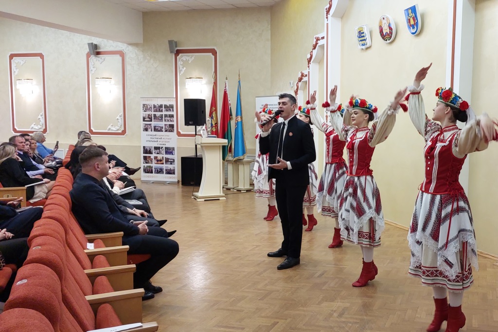 Музыкальным завершением плодотворной встречи с активом БП «Белая Русь» стало выступление солистов Дворца культуры Вероники Пташник, Ирины Судникович, Александры Шиман и Павла Данилова в сопровождении хореографического коллектива «Молодея» гимназии-колледжа искусств г. Молодечно (руководитель – Н.Ф. Мончак).