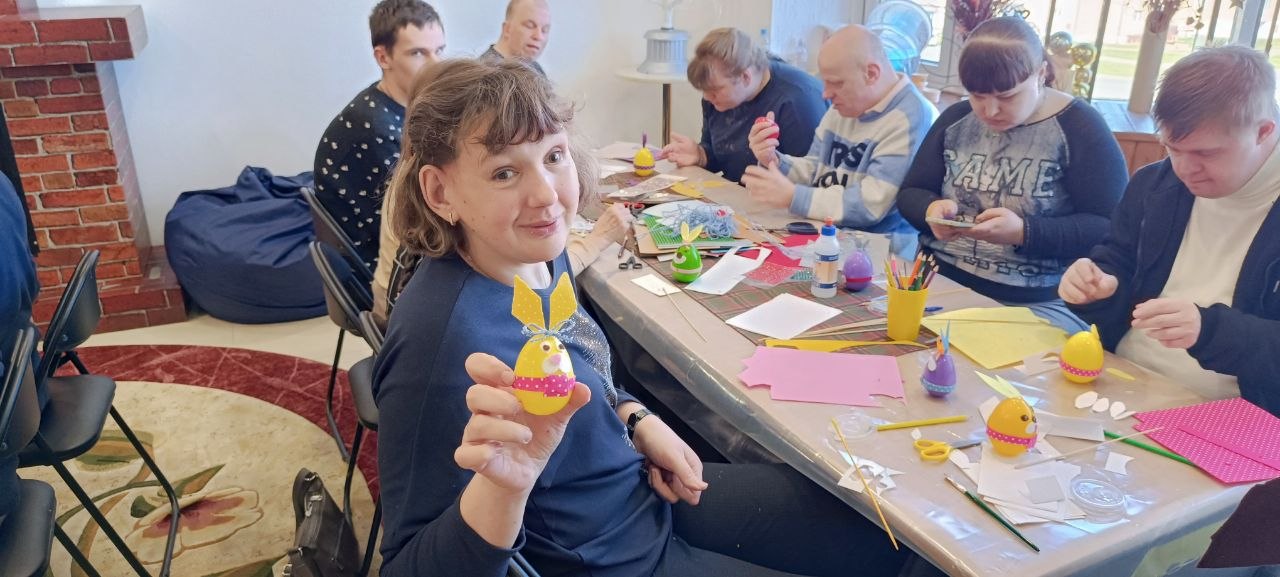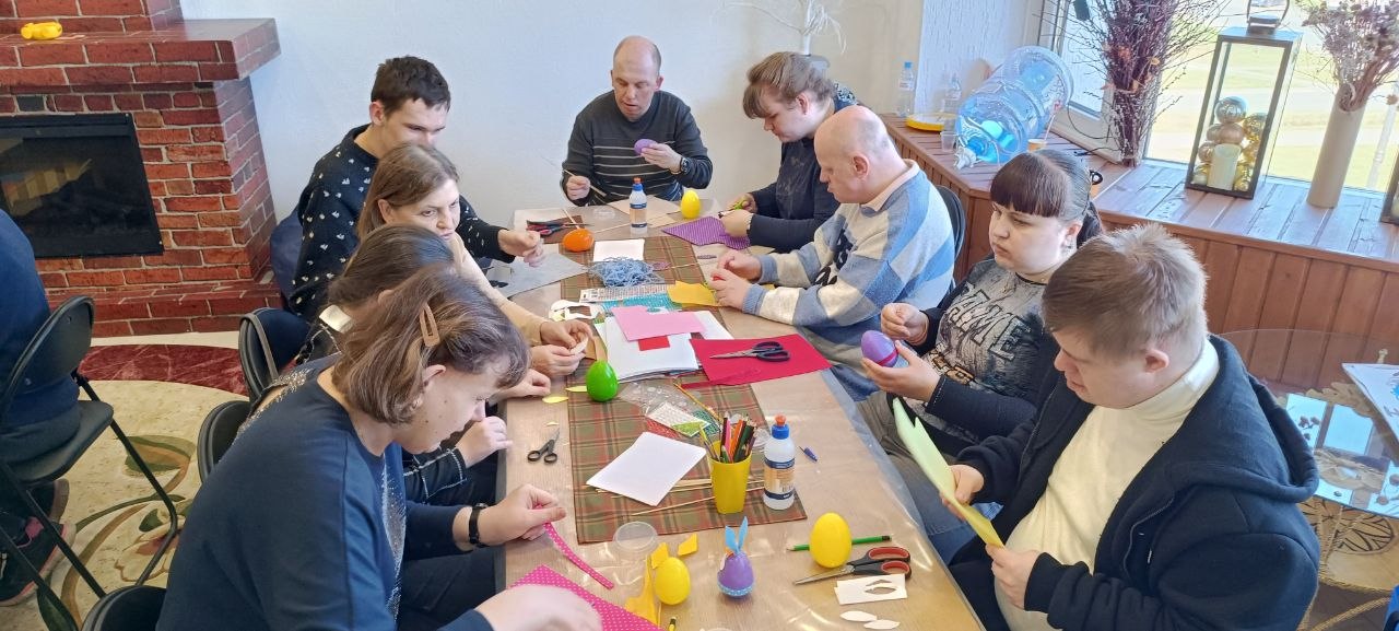 02.04.2026В любительском объединении визуального искусства «Моё солнце» (для людей с ограниченными возможностями и особенностями развития) Дворца культуры г. Молодечно 2 апреля была организована творческая лаборатория. Вместе с руководителем Светланой Серёгиной воспитанники изготавливали из подручных материалов символичных пасхальных зайцев.