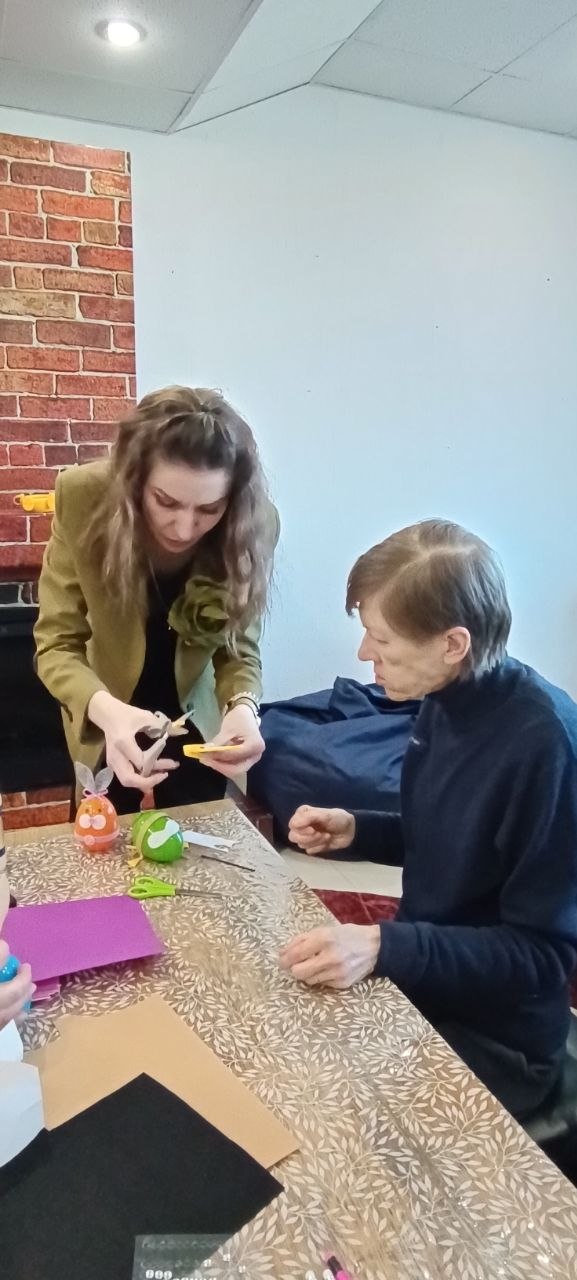 Светлана Серёгина, с присущим ей мастерством и теплотой, направляла и вдохновляла подопечных. Как всегда, она помогала им раскрывать потенциал, преодолевать трудности, чтобы они почувствовали уверенность в собственных силах. В результате кропотливой работы появились трогательные, милые и наполненные смыслом пасхальные зайцы, каждый из которых стал отражением души своего создателя.