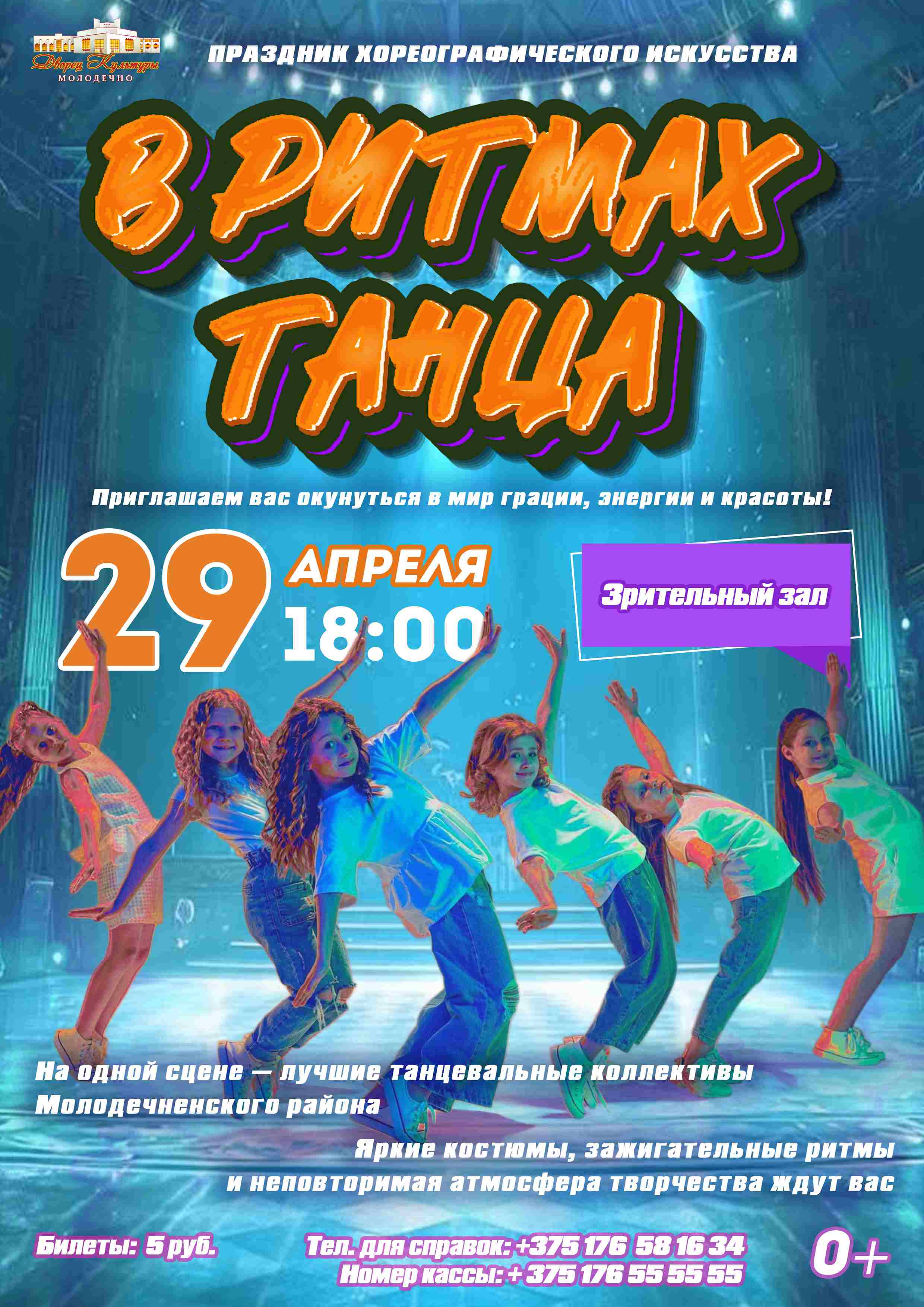 В нём примут участие творческие коллективы Молодечненского района. Наш праздник подарит вам незабываемые эмоции и яркие номера. Это настоящее путешествие по миру хореографии, где каждый танец – уникальная история. И оно будет наполнено талантом и вдохновением.