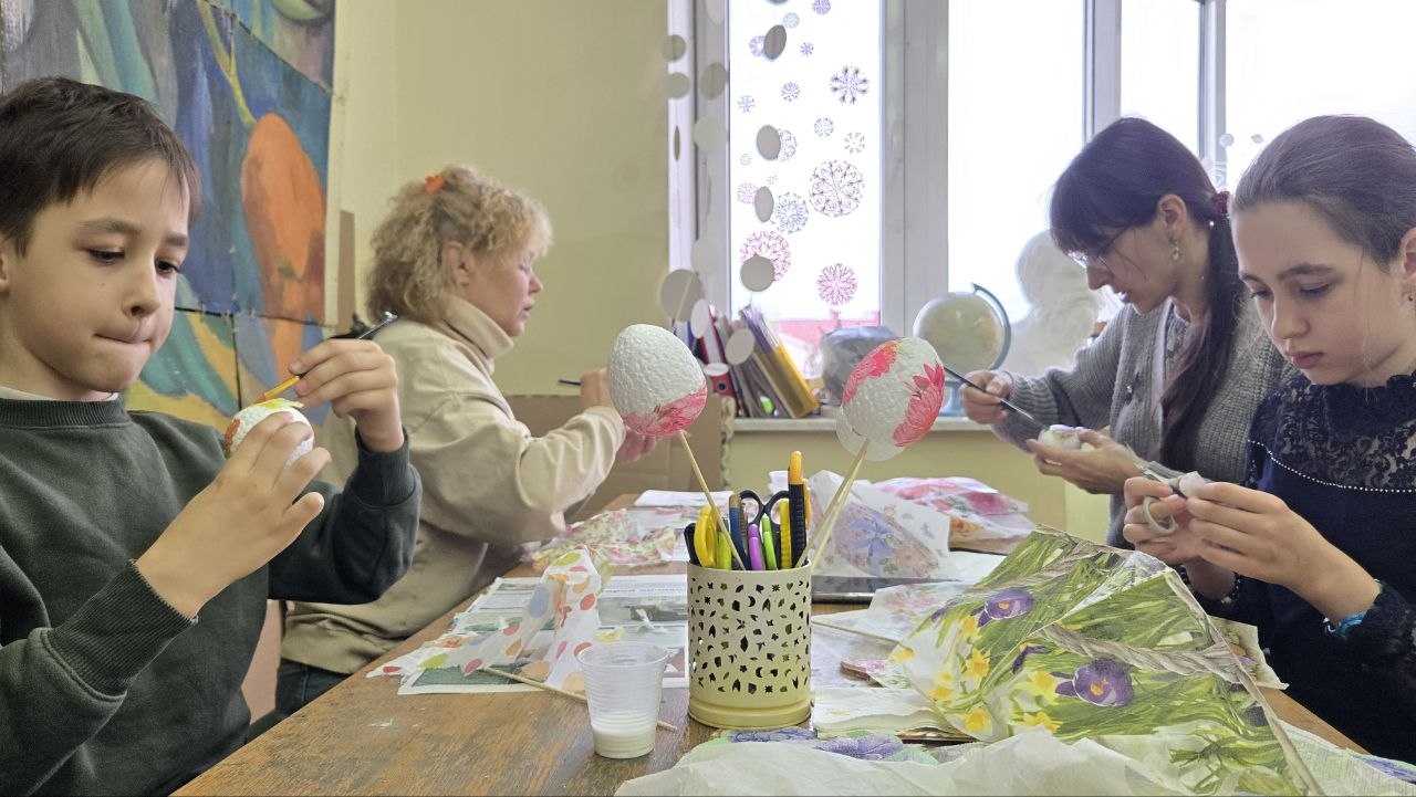 На занятии, которое прошло 7 апреля, дети и взрослые осваивали технику декупаж и учились преображать символичные пасхальные яйца в настоящие произведения искусства. Кропотливая работа с салфетками, клеем и красками была только в удовольствие! Яркие узоры, нежные цветы и тематические мотивы – все это воплощалось в декоре как символ возрождения и радости.