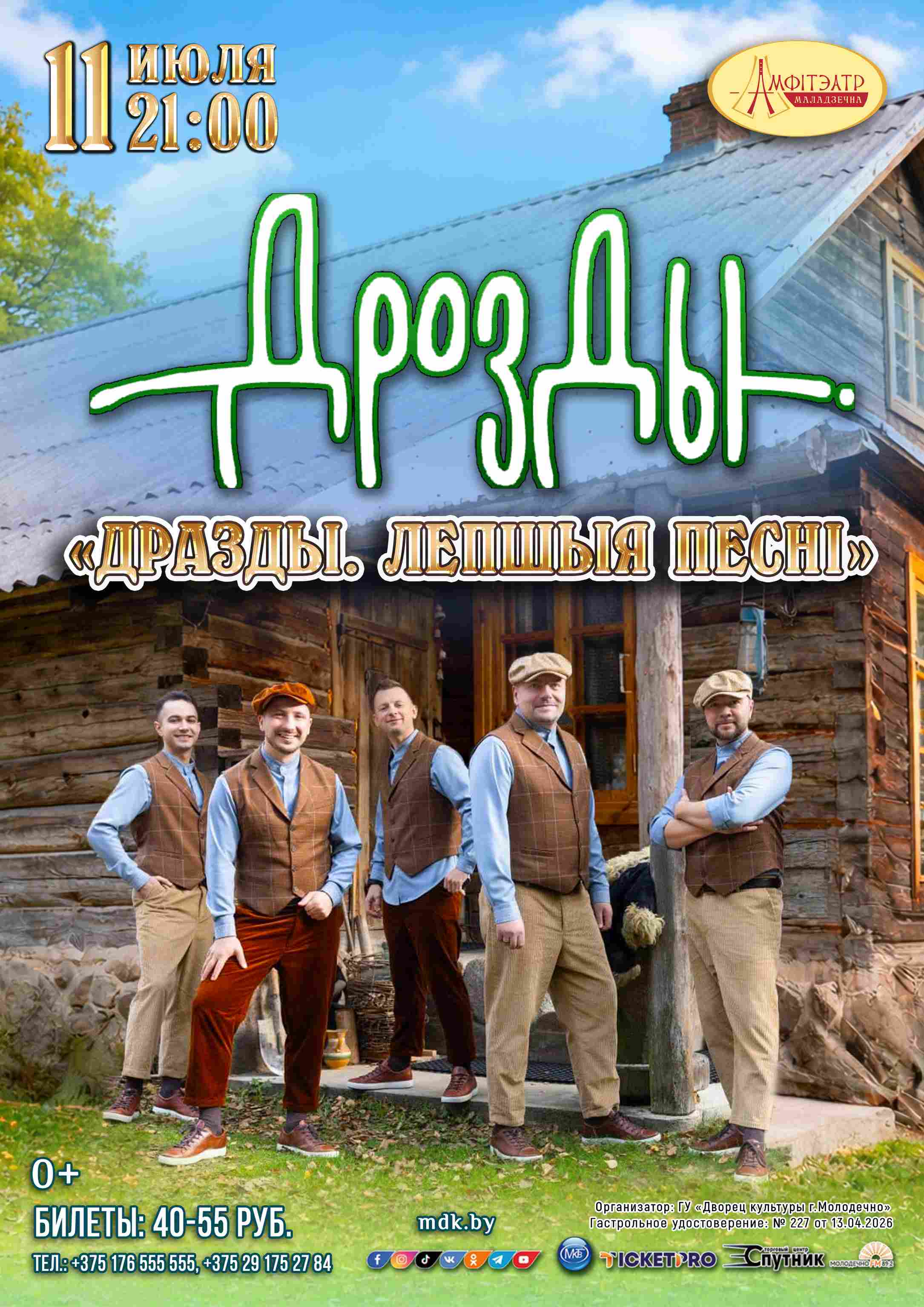 Она заслуженно считается одной из лучших в Беларуси. За годы творчества «Дрозды» дали свыше 1000 концертов в более чем 200 городах. Музыканты решили продолжить гастрольную деятельность, и уже 11 июля соберут поклонников своего творчества в Амфитеатре г. Молодечно!